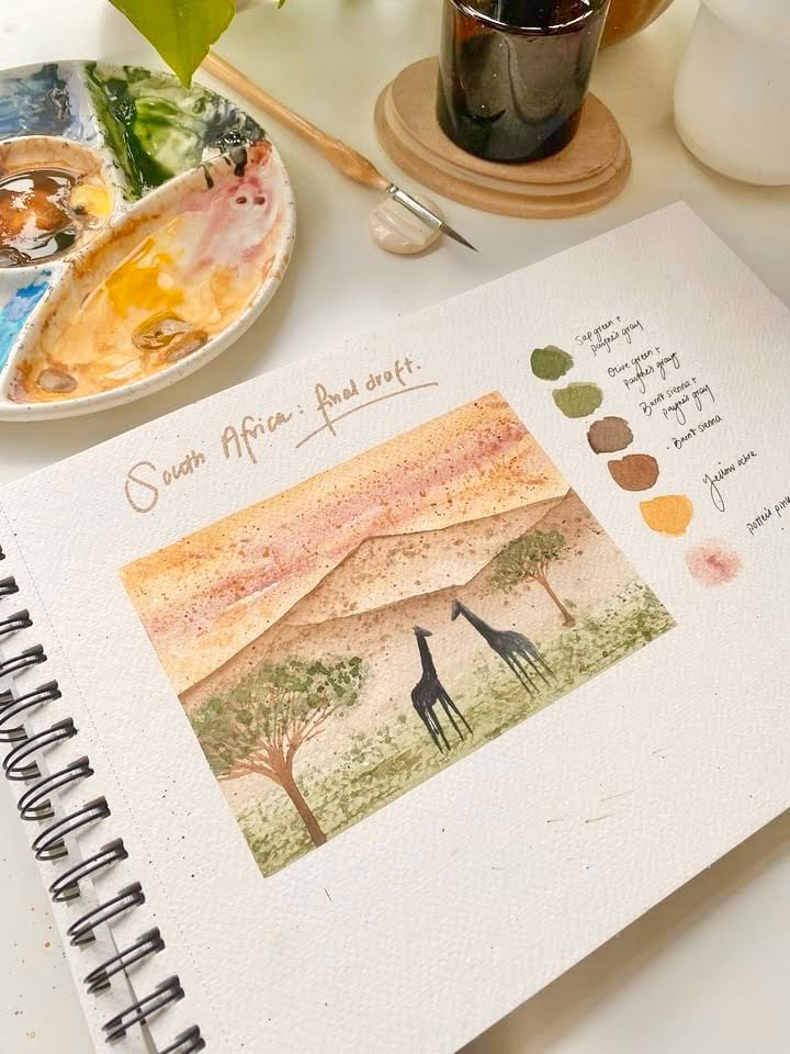 Firstly, we discussed the idea for the painting. She really loved the sceneries of Guilin, China. I asked a few questions about her mother to get an idea of who she is, what she likes, the colours she’s drawn to, etc.
